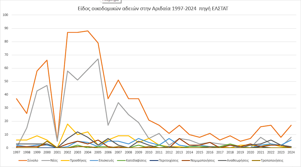 • Οι αριθμοί δείχνουν πως ήδη από το 2002–2003, η Αριδαία εισέρχεται σε φάση ταχείας οικοδομικής επέκτασης.
